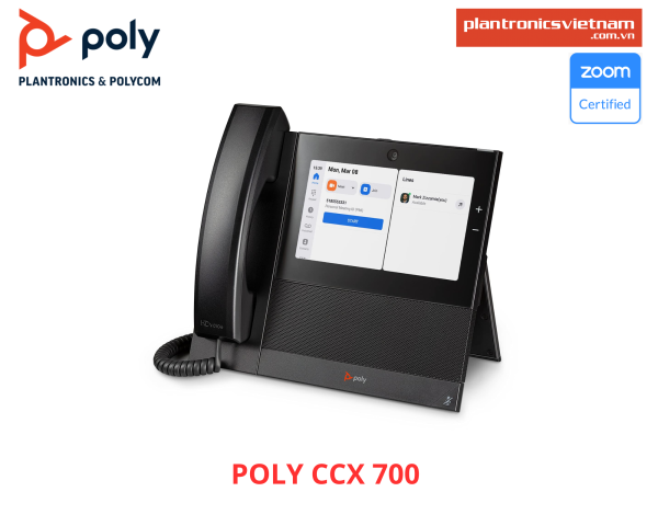 Poly CCX 700 là dòng điện thoại IP cao cấp được thiết kế dành riêng cho các nhà quản lý, giám đốc và người dùng chuyên nghiệp trong môi trường doanh nghiệp hiện đại. Sản phẩm nổi bật với màn hình cảm ứng 7 inch sắc nét, tích hợp camera 4MP hỗ trợ gọi video Full HD cùng công nghệ âm thanh Poly HD Voice tiên tiến. Nhờ khả năng kết nối linh hoạt qua Ethernet, Wi-Fi, Bluetooth và USB, Poly CCX 700 mang đến trải nghiệm giao tiếp thông minh và tiện lợi. Thiết bị chạy hệ điều hành Android, hỗ trợ cài ứng dụng doanh nghiệp và quản trị từ xa an toàn. Với thiết kế sang trọng, tính năng mạnh mẽ và độ bảo mật cao, Poly CCX 700 là giải pháp lý tưởng cho văn phòng hiện đại và môi trường làm việc hybrid.
